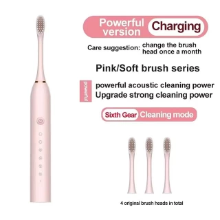 Electric Ultrasonic Toothbrush Six Speed Mode Home Soft Hair USB Charging Waterproof Adult Tooth Cleaner Automatic Couple Set-